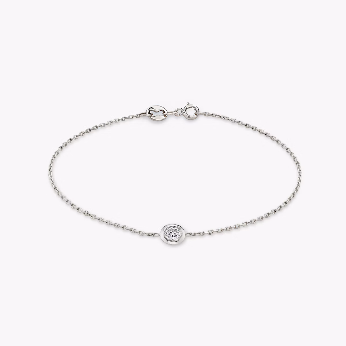 Knife-Edge Bezel Bracelet | Round Brilliant | 14k | White Gold | chainLength: 6.5